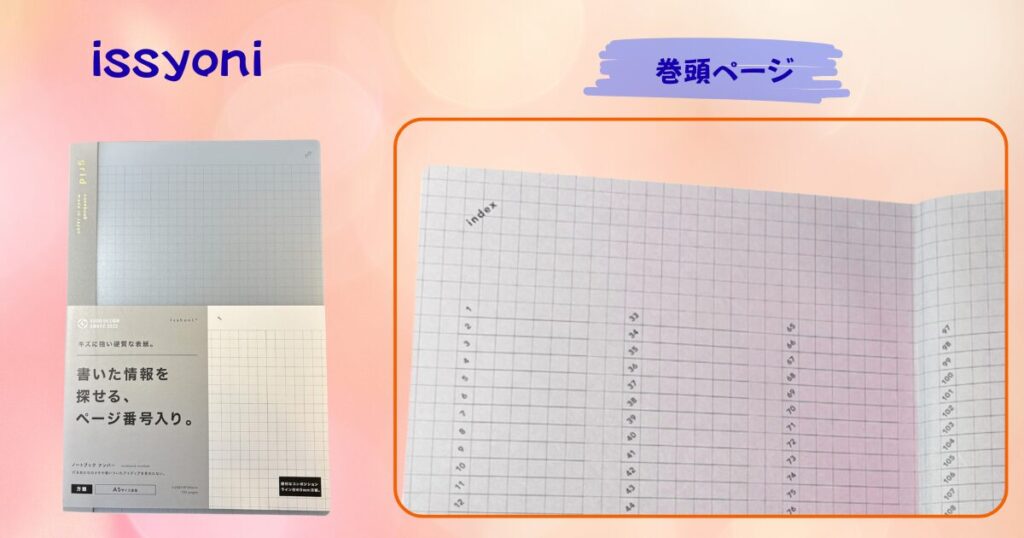 今までいろいろな方眼ノートを使ってきましたが、今は「そふとリング(方眼)」を使っています。ソフトとはいえ、リングノートはやっぱり苦手でした。こちらもまもなく書き終わるので、次はこのissyoniに移行します。