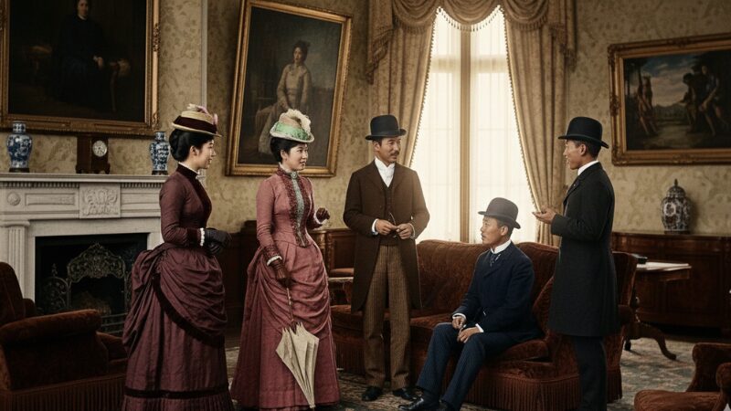 明治時代のドレスに着替える